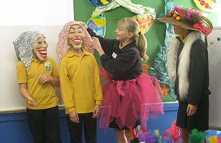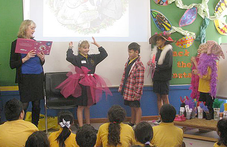 Here I share some pictures with you of previous school visits I've done. If I come to your school, it will look like I'm planning to stay for a week! I lug along a suitcase of props to enable the children to dress up and act out stories. Portraying a character in a book will help a child make a more personal connection to that character and the choices the character makes. Acting out a story also will help the child remember what happened in the story – another way to improve reading comprehension. But the best reason I love to do this with the kids is because it is heaps of fun for everyone, and after all – 'LIFE IS BETTER WHEN YOU'RE LAUGHING!'